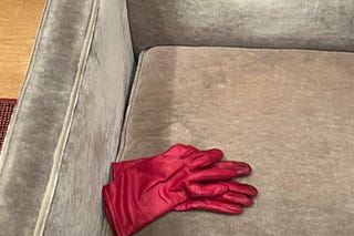 In NYC there are stories everywhere! I was in the JP Morgan Museam and I saw lying on an empty couch a pair of red leather gloves...a poem followed.
